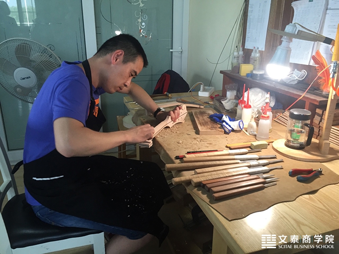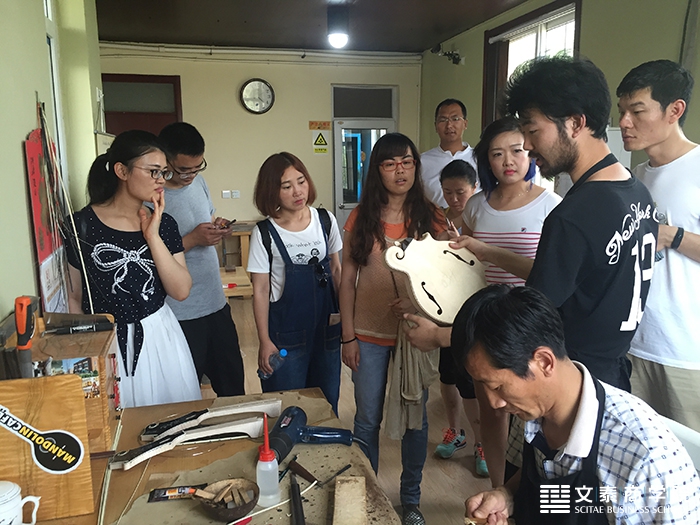 7月2日初夏的明媚午后,文泰爱乐团一行20位热爱音乐的校友们驱车来到中国人民大学MBA总经理班老张同学悉心料理的北方原野梦想音乐庄园。老张同学热情的为校友们介绍着自己的公司背景,带领参观制琴车间,在这个看似不大的制琴车间,却生产着国内最好的曼陀铃,每一把曼陀铃都是用最优质的材料以及最精湛的手工工艺制作而成,且每一把手工琴都是国外音乐家们的定制宝贝,参观车间的同学们无一不表示赞叹。另外,北方原野生产的SHUBB变调夹也是全球品牌历史最悠久且品质最好的变调夹。老张为同学们津津乐道地讲述着自己与音乐结缘的故事,在北方原野,每一寸光阴都已融入每一根琴弦,一弦一曲都倾注了老张对音乐对理想的向往。