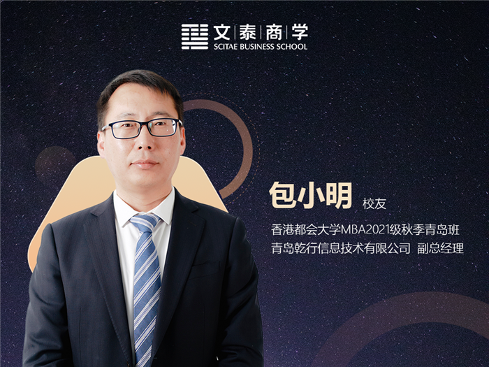 随后,文泰七号校友活动基地负责人、青岛乾行信息技术有限公司副总经理、香港都会大学MBA2021级秋季青岛班包小明校友对出席本次活动的嘉宾及校友的莅临和在前期活动筹备中文泰校友活动基地管理团队的支持帮助表示感谢。包小明校友希望七号校友活动基地不仅可以作为一个活动的场地,还能够成为文泰校友们相互交流的平台。