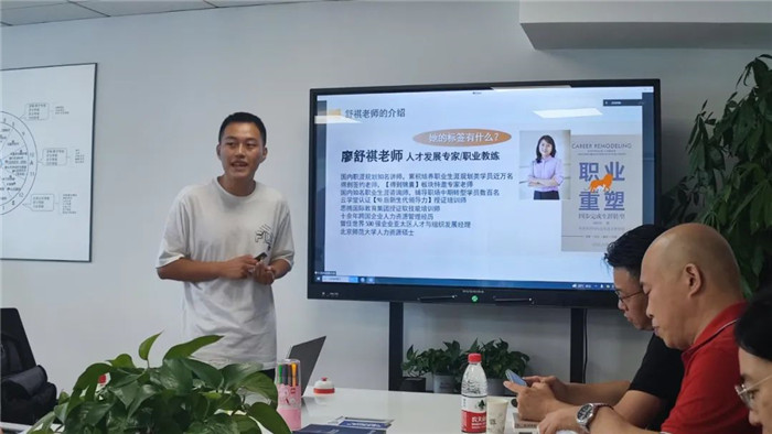 读书会伊始,韩继然老师向同学们介绍了《职业重塑》这本书。《职业重塑》是中国第一本职场转型书,是来自实战派大咖廖舒祺老师,一位前世界500强亚太区人才与组织发展经理、全国十佳职业生涯规划导师的一本职业生涯圣经。