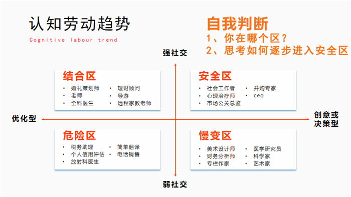 韩继然老师就转型机会、转型阶段、转型方法三个方面带领大家思考职业发展新思路,认知未来的劳动趋势。